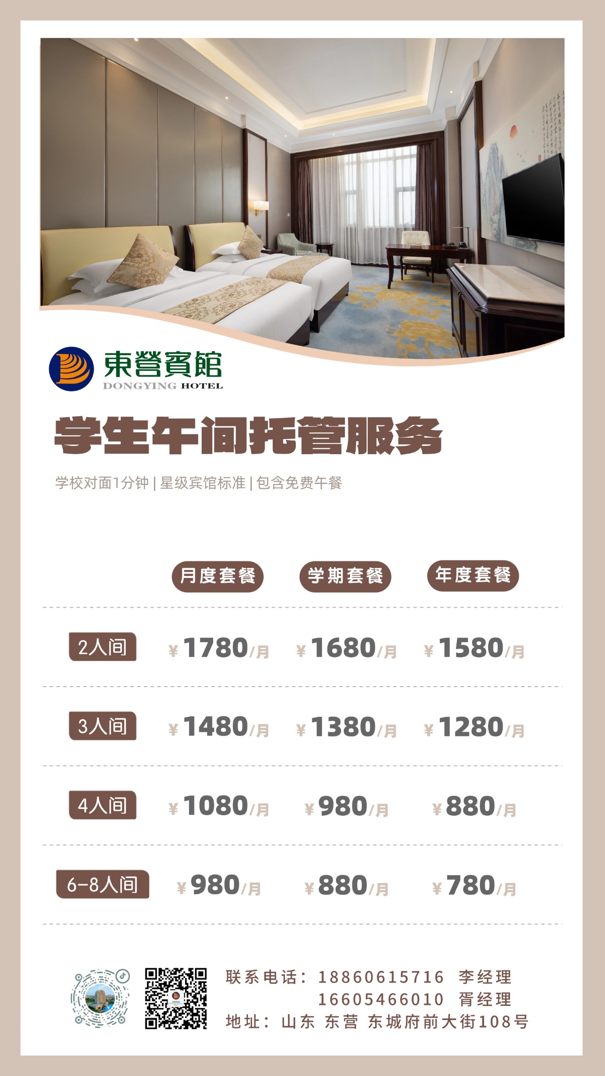 东营宾馆凭借得天独厚的地理位置和星级服务标准,正式推出 【学生专属午休托管服务】!